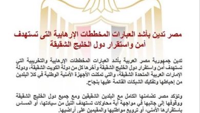 مصر تعبر عن إدانتها الشديدة للمخططات الإرهابية التي تهدد أمن واستقرار دول الخليج
