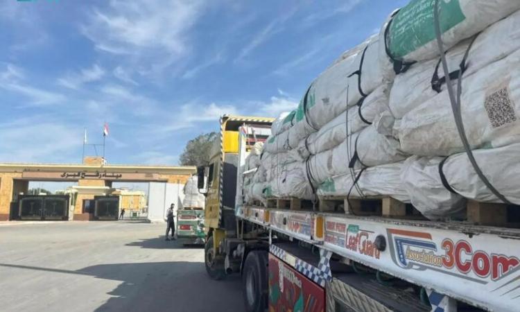 مساعدات سعودية تعبر منفذ رفح البري إلى غزة بالتنسيق مع الهلال الأحمر المصري