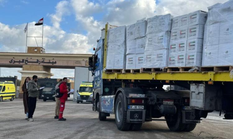 عبور 25 شاحنة مساعدات إماراتية لدعم الفلسطينيين في قطاع غزة