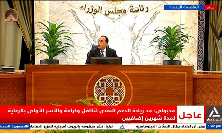 مدبولى يعلن عن تمديد دعم تكافل وكرامة للأسر الأكثر احتياجاً لمدة شهرين إضافيين