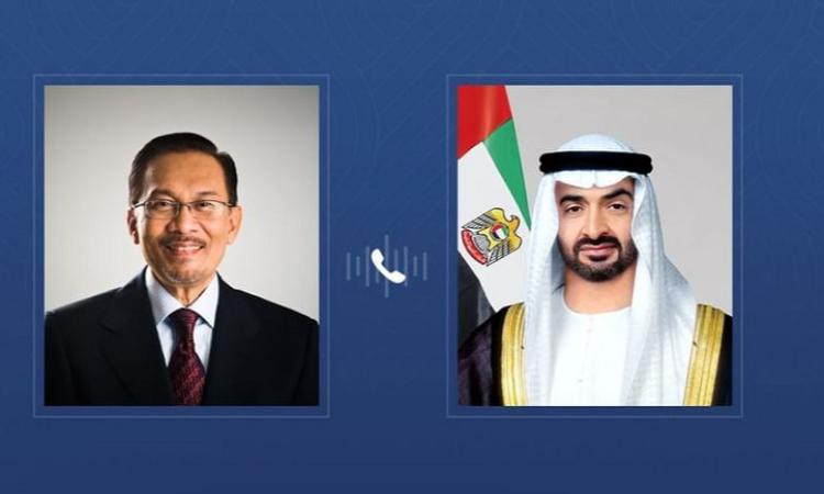 أجرى الشيخ محمد بن زايد آل نهيان، رئيس الإمارات، اتصالاً هاتفياً مع رئيس وزراء ماليزيا، أنور إبراهيم، حيث تناول الطرفان القضايا الراهنة التي تشهدها المنطقة وضرورة وقف التصعيد العسكري.