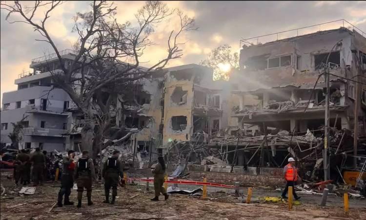 تسبب الانفجار الناتج عن الصاروخ في أضرار جسيمة للمبنى المؤلف من عدة طوابق. وأفادت التقارير أن منطاداً محملاً بالغاز انفجر أيضاً في موقع الحادث، مما فاقم من الأضرار. لا تزال أعمدة الدخان تتصاعد من المكان، وتعمل فرق الطوارئ على إنقاذ الضحايا.